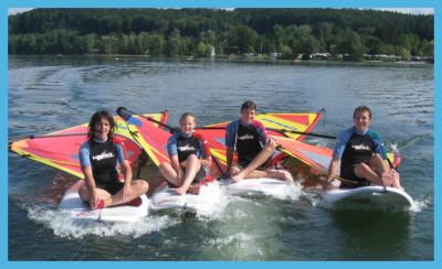 1 1/2-Tageskurs (6 Stunden)In den ersten 6 Stunden vom Grundkurs bekommst Du bestimmt Lust auf mehr. Willst Du das Windsurfen wirklich erlernen, so kommst Du jedoch nicht um den Grundkurs herum. Dazu kannst Du jedoch upgraden. In den ersten 6 Stunden hast Du aber schon mal ordentlich reingeschnuppert.3 bis max. 8 TeilnehmerMindestalter 7 JahreMo-FrSa/So und FeiertagWindsurfing Grundkurs3-Tageskurs (12 Stunden), Theorie und Praxis.Nach dem Kurs bist Du in der Lage selbständig weiter zu üben. Du kannst Dir dazu unser Windsurfing-Equipement mieten. Am letzten Kurstag kannst Du die Grundscheinprüfung ablegen. Damit darfst Du auf jeden See surfen und bekommst auch überall Mietmaterial.3 bis max. 8 TeilnehmerMindestalter 7 JahreMo-FrSa/So und Feiertag
